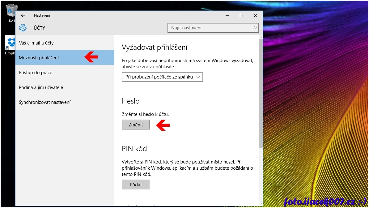 možnosti přihlášení Windows10