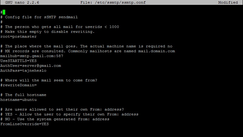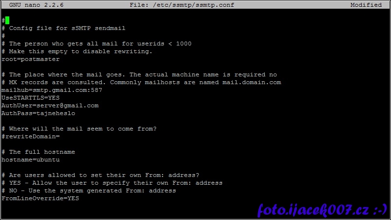 konfigurace ssmtp