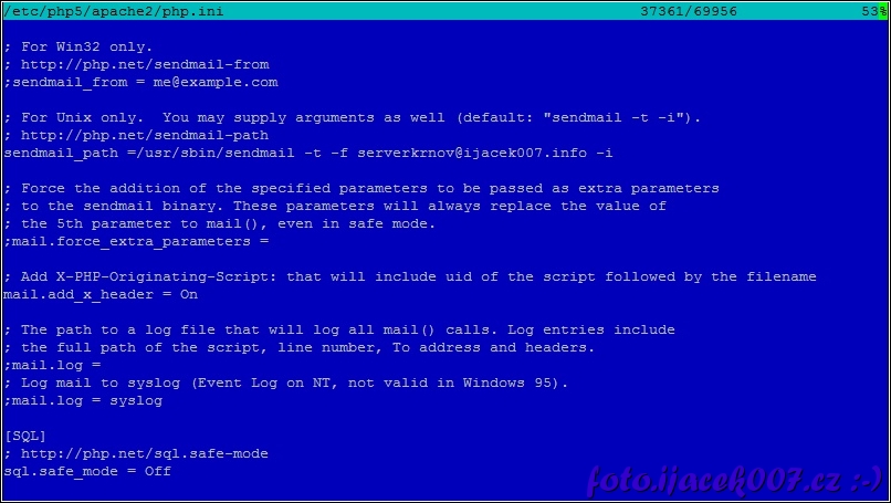 php.ini konfigurace pošty