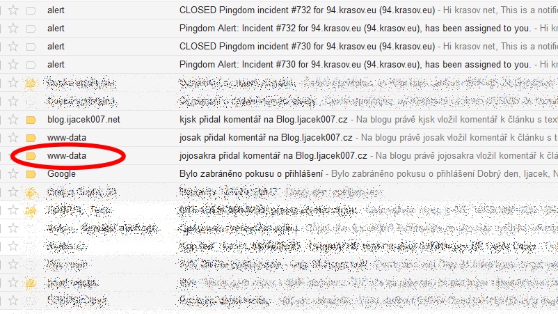 chyba v konfiguraci odesílatel www-data