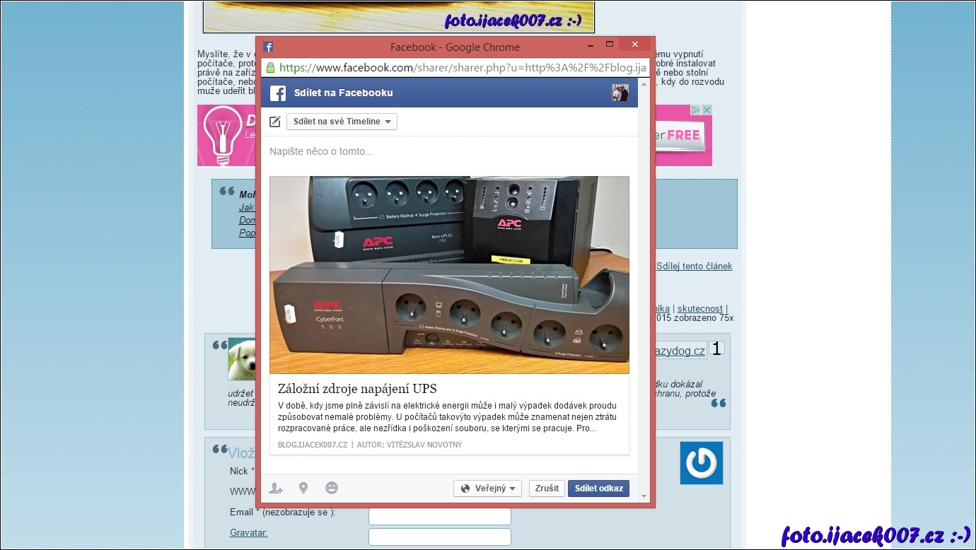 ukázka jak jednoduše nyní můžete podpořit blog a sdílet zajímavé články,.