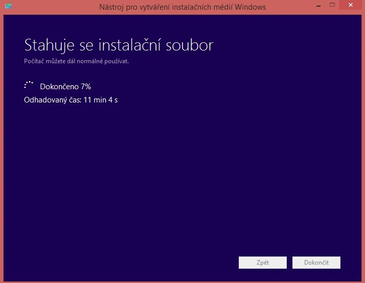 průběh stahování instalátoru