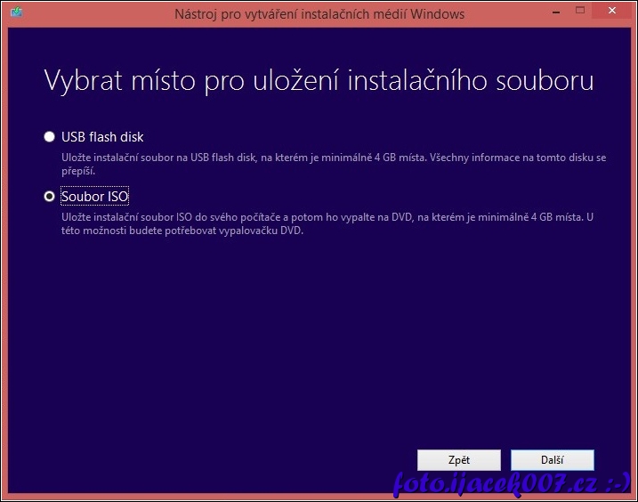 výběr vytvoření ISO souboru či instalačního USB disku