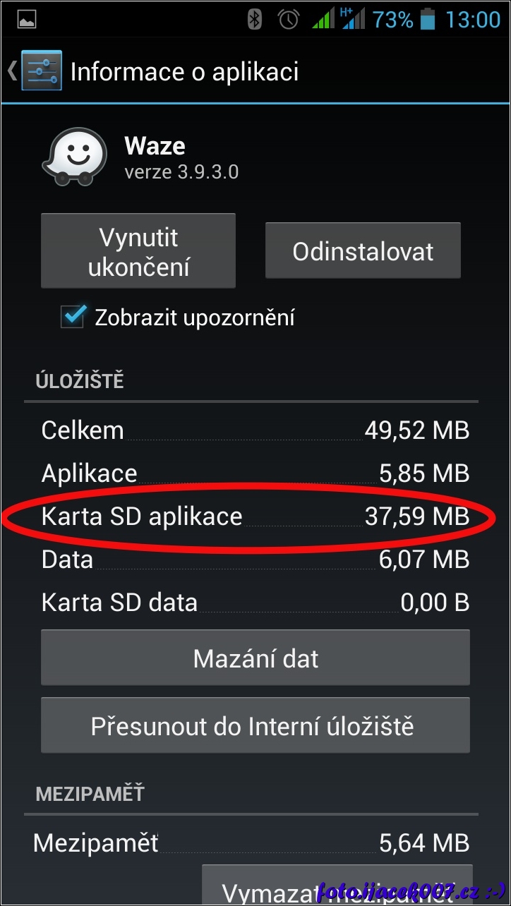 informace o uložení dat aplikace na SD kartu