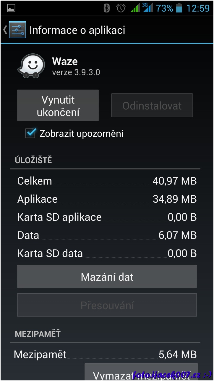 informace o přesouvání aplikace do jiného úložiště