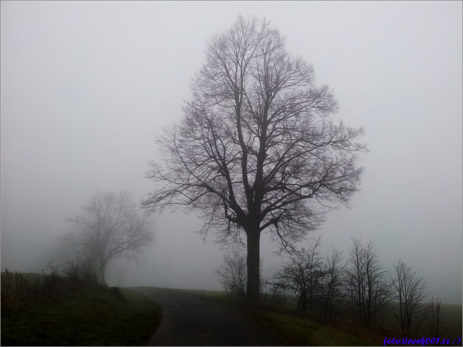strom na horizontu kopce díky mlze je okolí téměř k nerozeznání