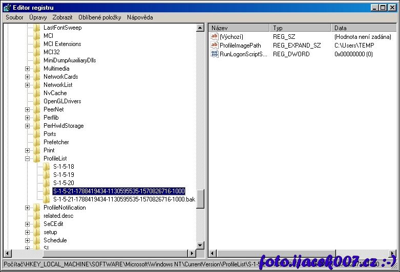 při chybě uživatelského profilu