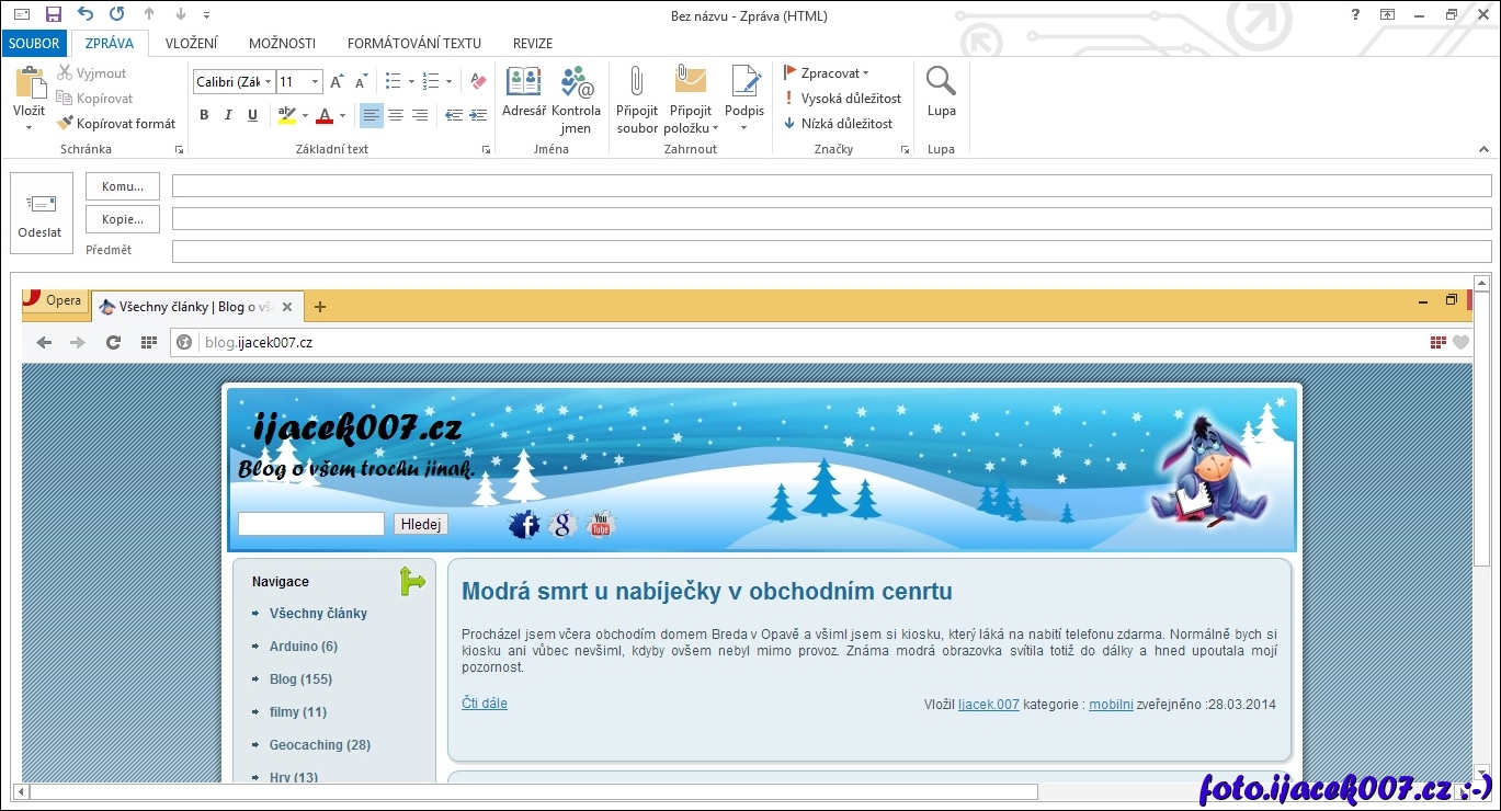 vložení obrázku přímo do emailového klienta outlook