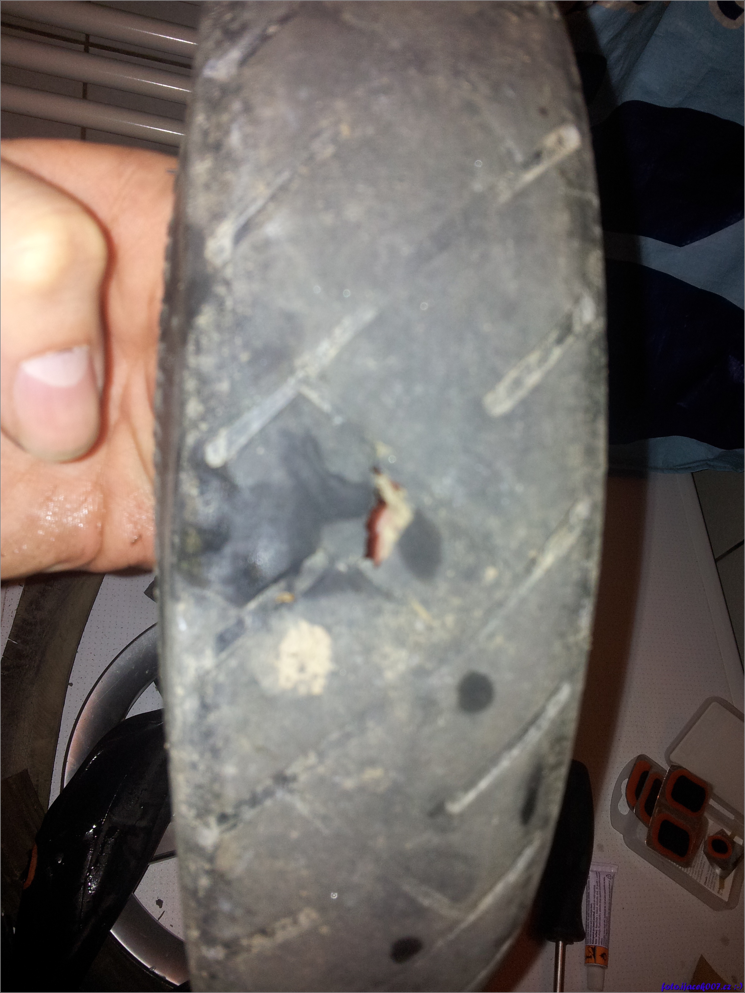 viditelná díra v plášti kola