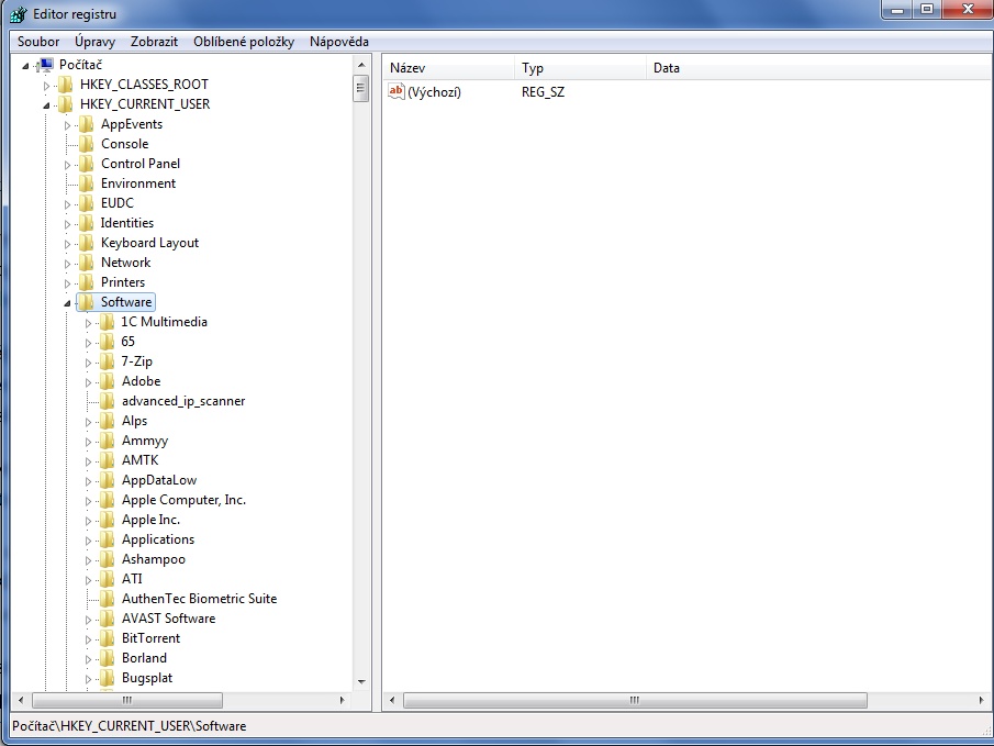 větev HKEY_CURRENT_USER/Software