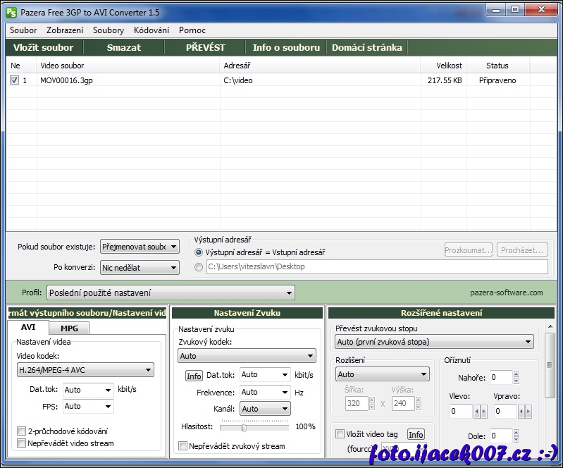 pohled na seznam souboru k převodu