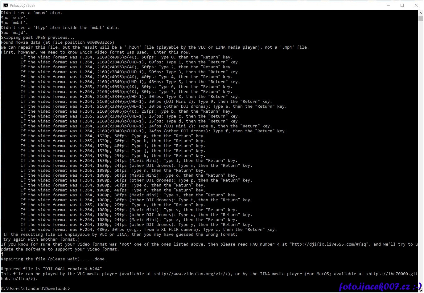 Oprava dokončena a opravený videosoubor je uložen pod nové méno s příponou H264
