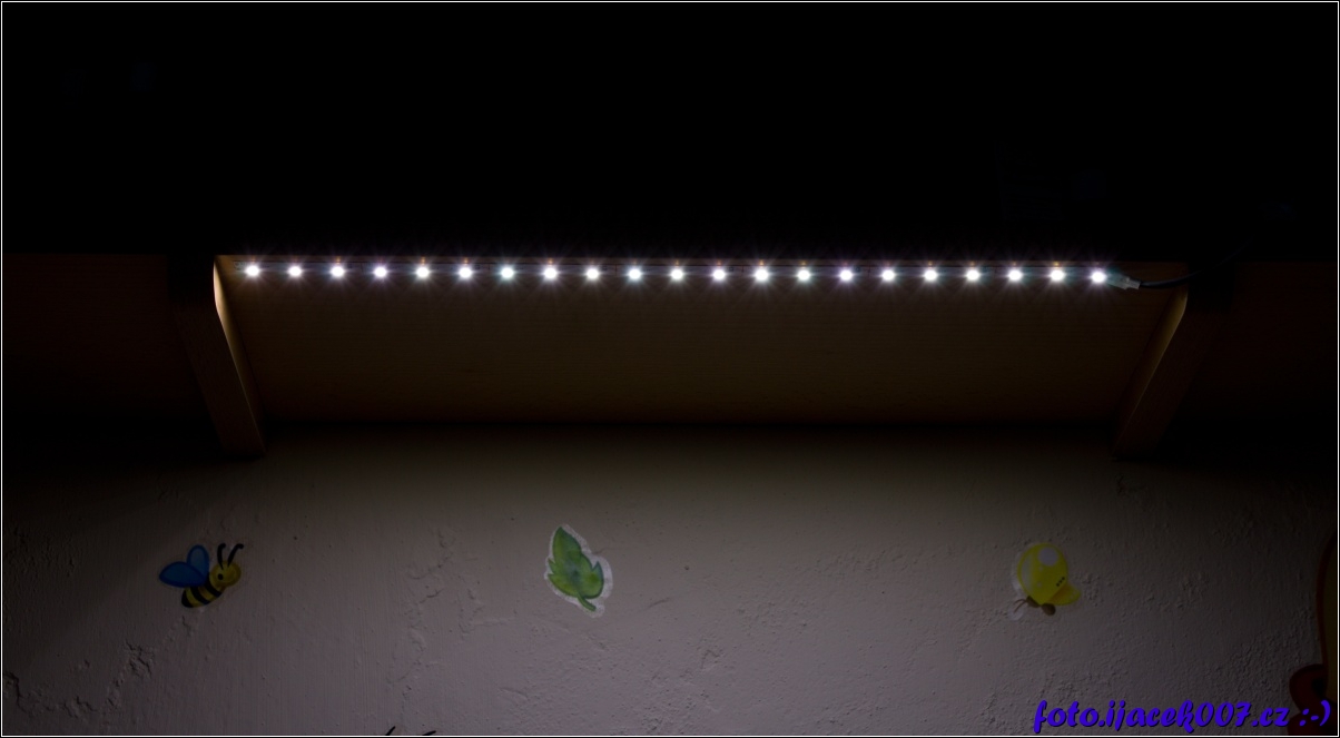 silně podexponovaná fotka ukazující světlo z pásku