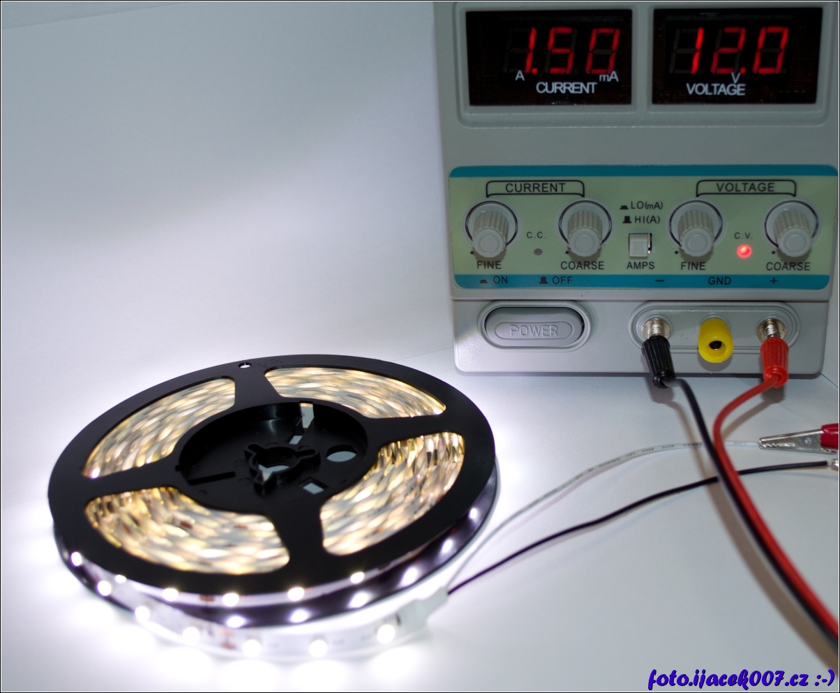 pohled na svíticí pásek i na zdroj který ukazuje jeho aktuální spotřebu