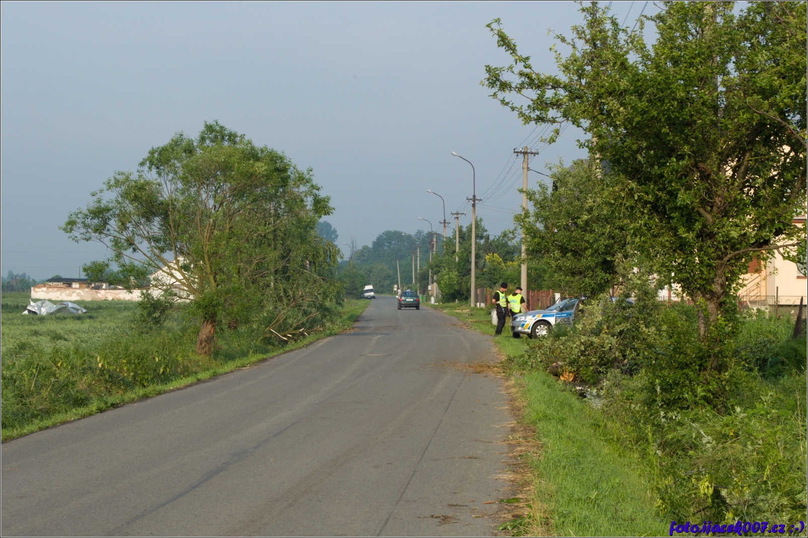 policie chránila a hlídala okolí poničených domů