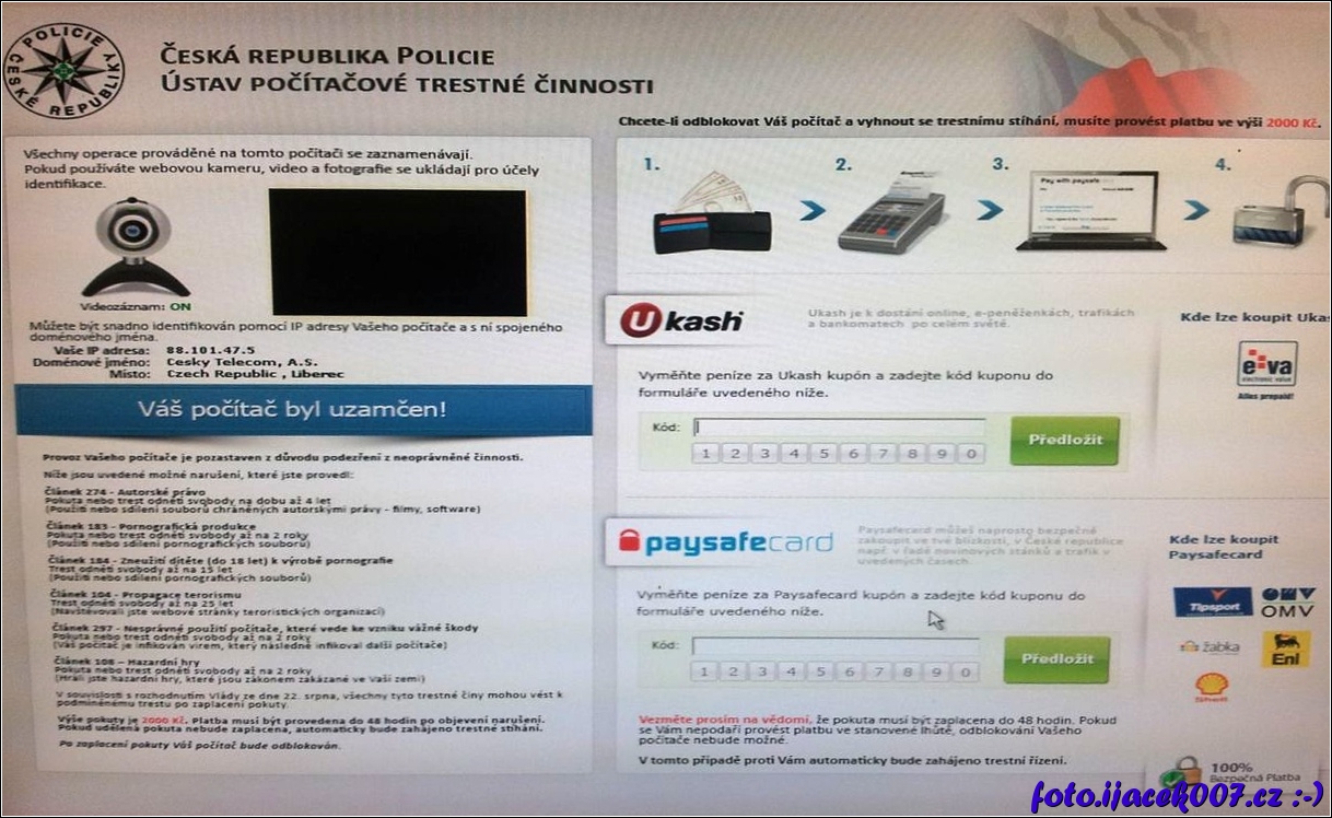 obrazovka postiženého počítače policejním virem