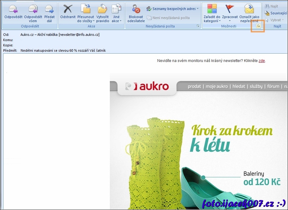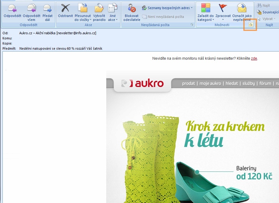 zobrazeni hlavicky emailu outlook