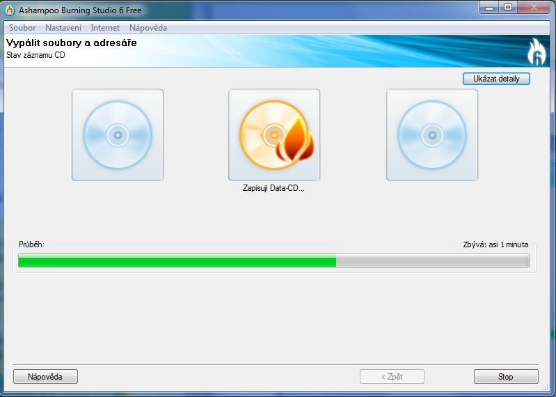 proces vypalování dat na disk