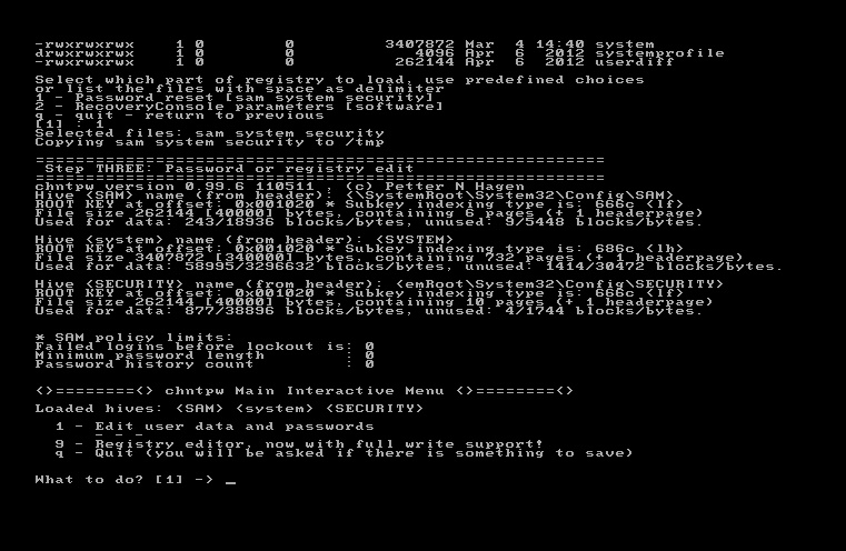 password registry editor