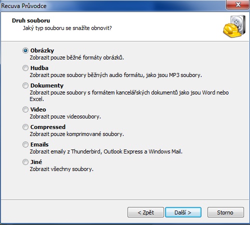 recuva pruvodce vyber dat