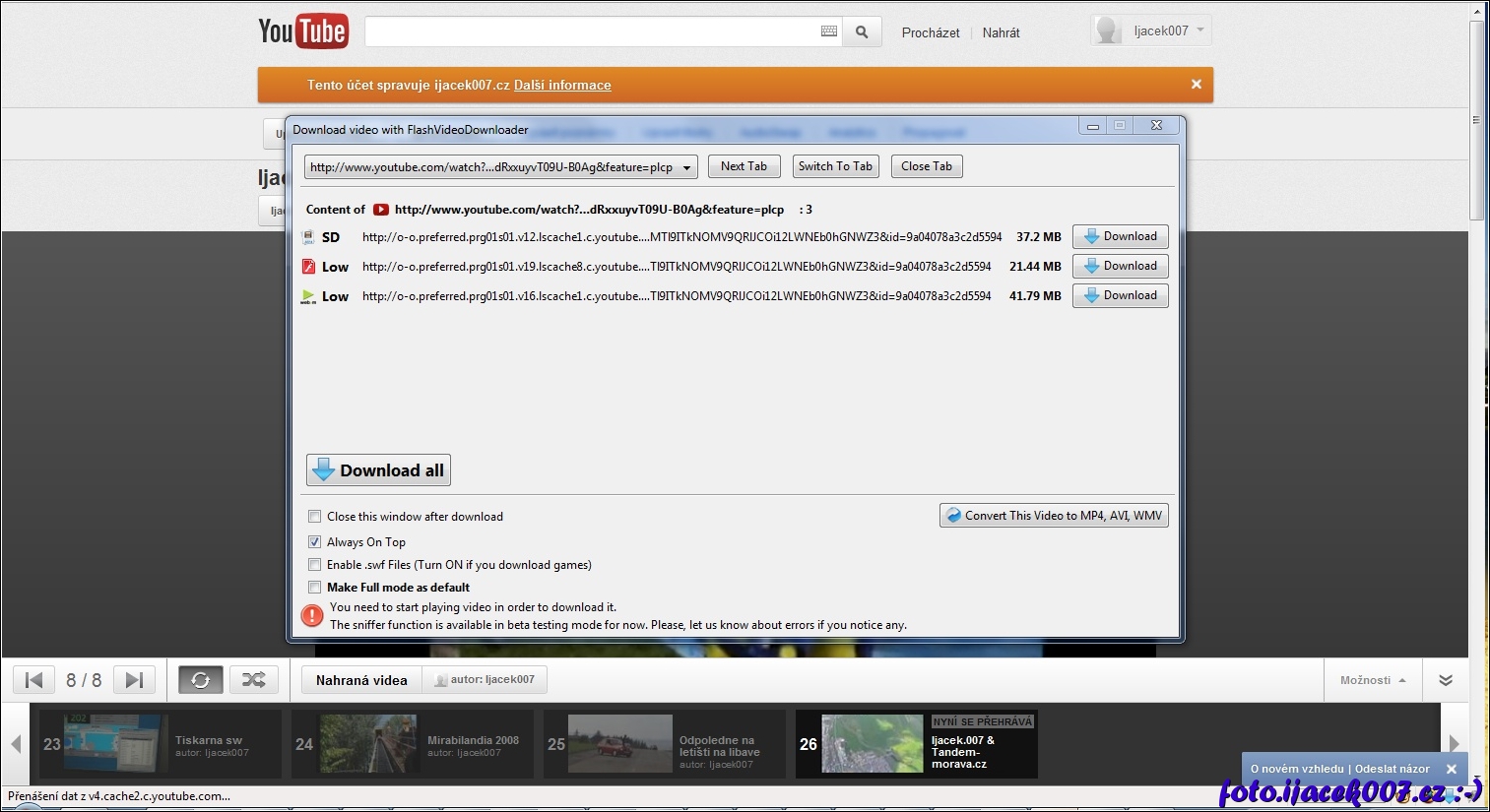 uložení videa ze serveru youtube