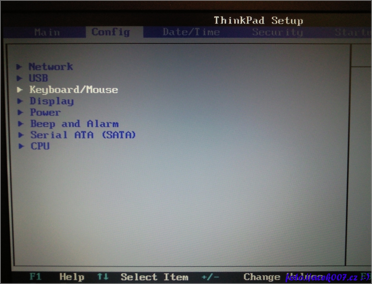 Bios nastavení záložka Config položka klávesnice / myš Keyboard/Mouse