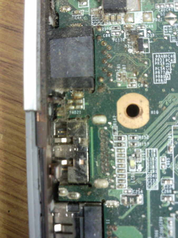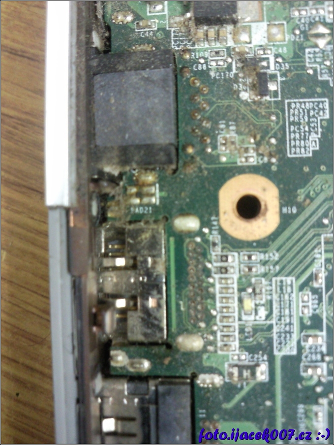 detail na základní desku notebooku a brach na kontaktech