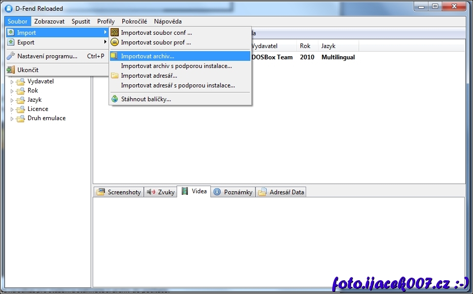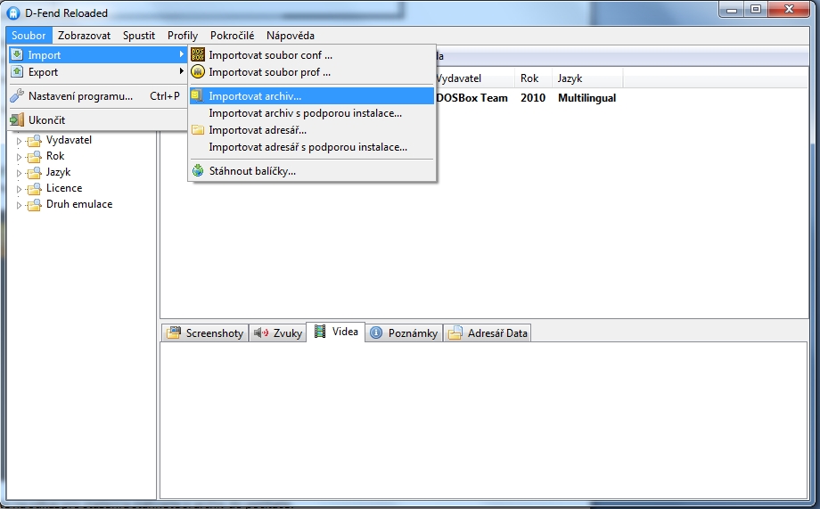 možnost importovat hry do prostředí programu