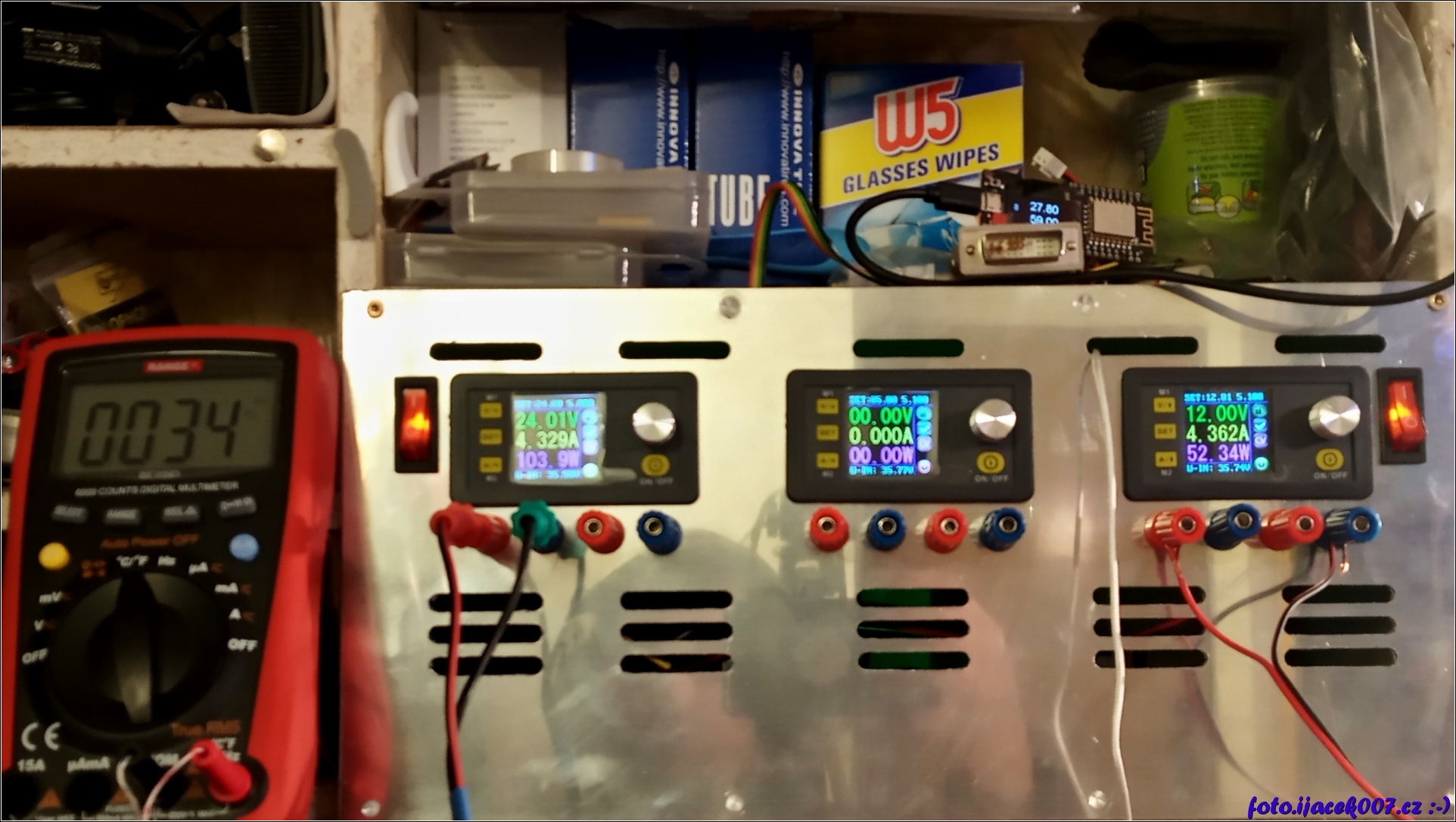 Po složení následovalo zatížení zdroju a také měřejí teploty zda nedochází k přehřívání.