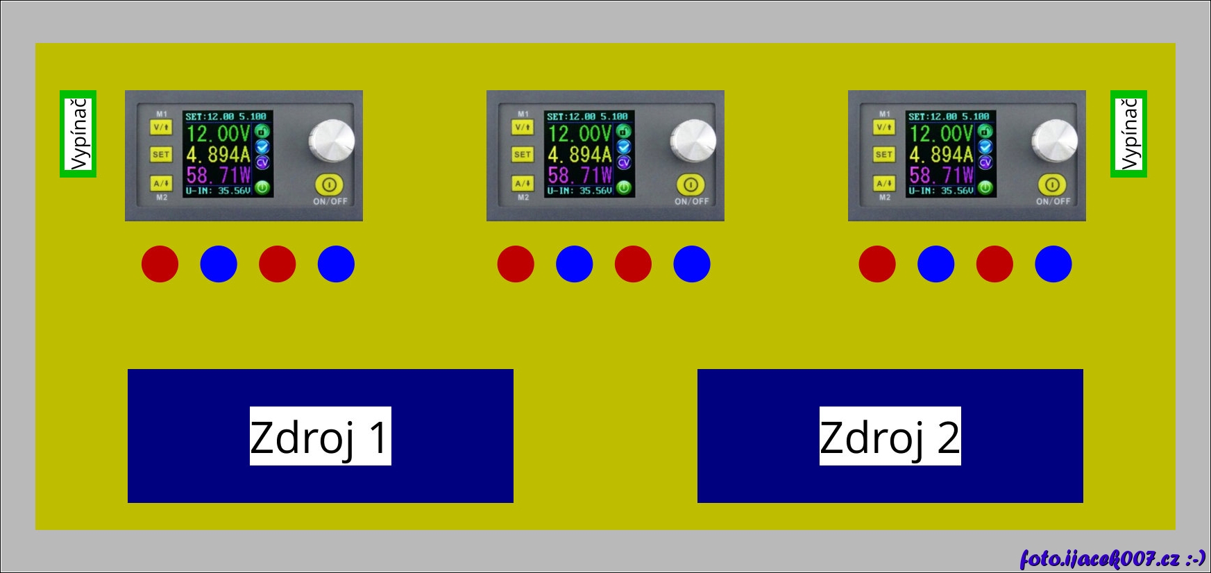 Pohled na všechny prvky paboratorních zdroju.
