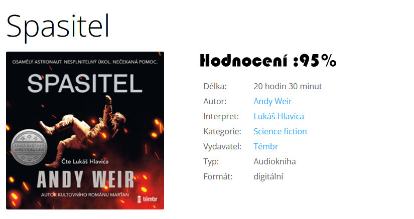Hodnoceni audioknihy Spasitel