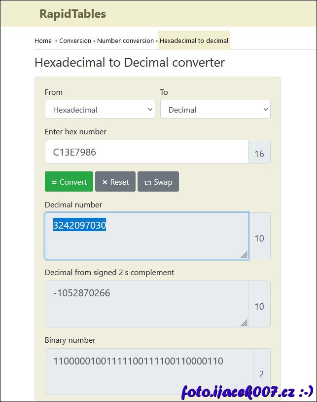 Webová stránka pro převod HEX(a) na desitkovou soustavu.