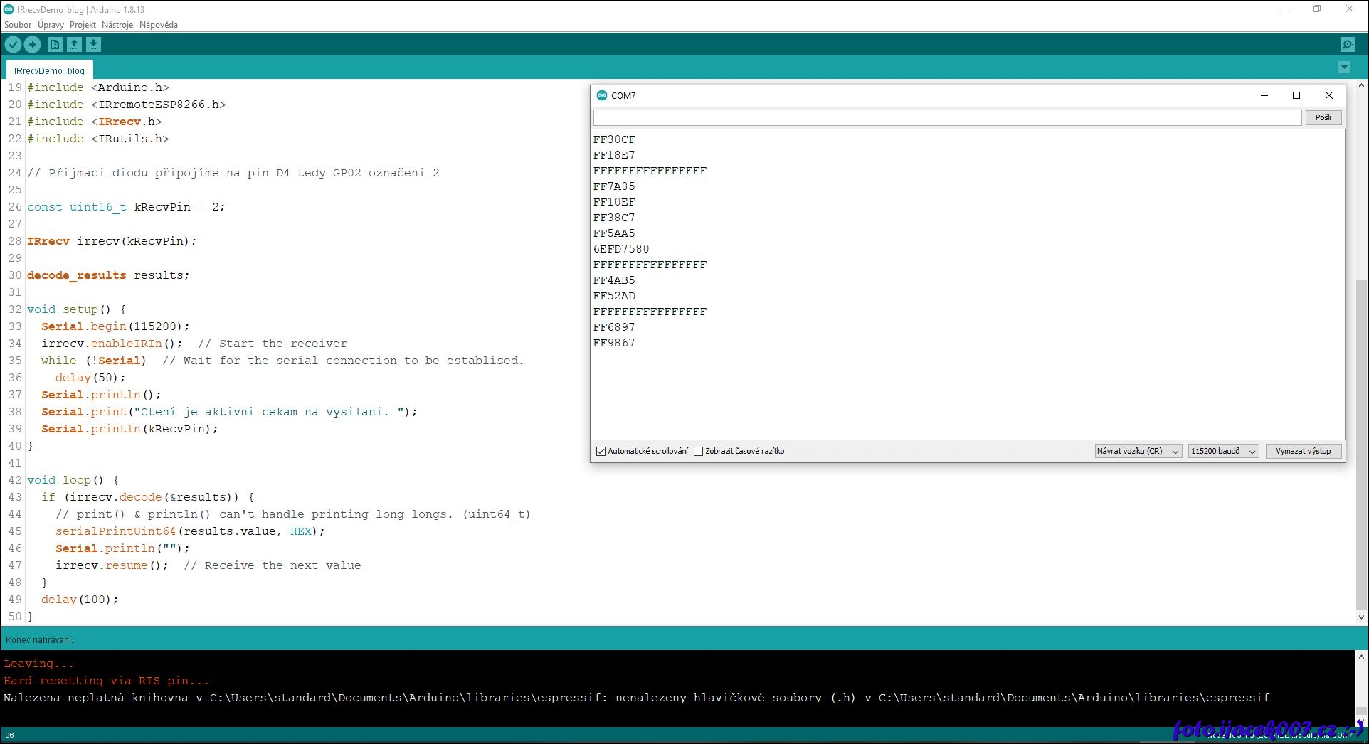 Ardruino ESP8266 četení infračerveného signálu.