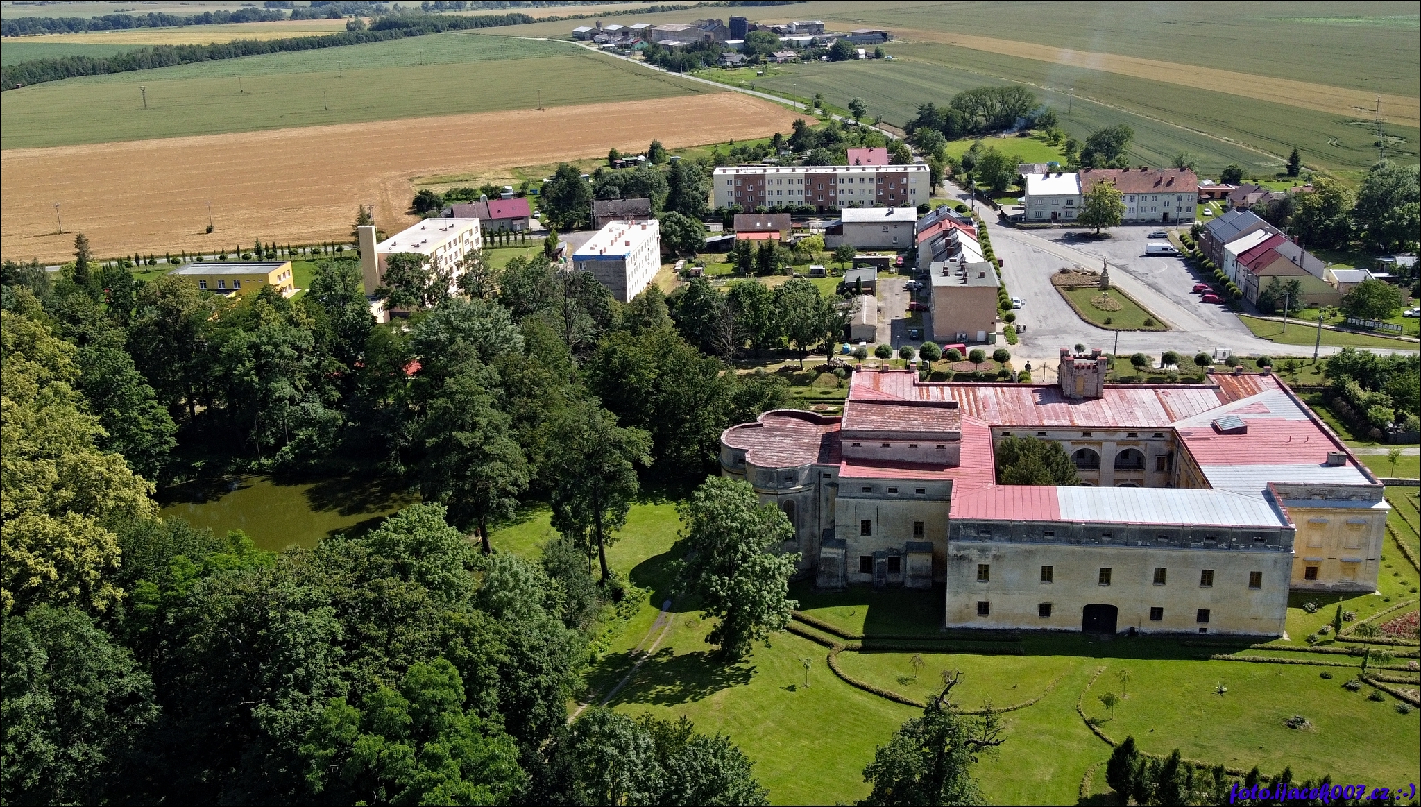 Pohled na zámek v obci Slezské Rudoltice.