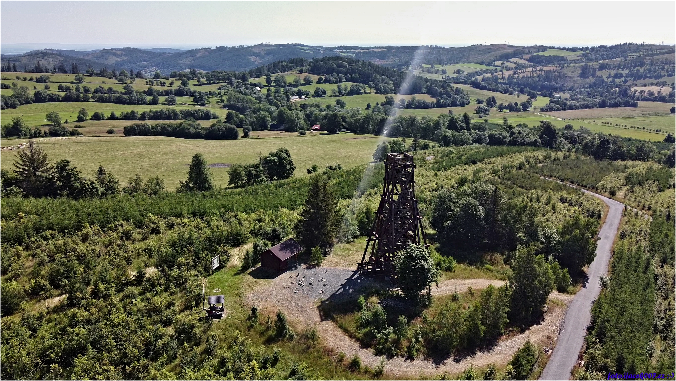 Pohled na rozhlednu z výšky.