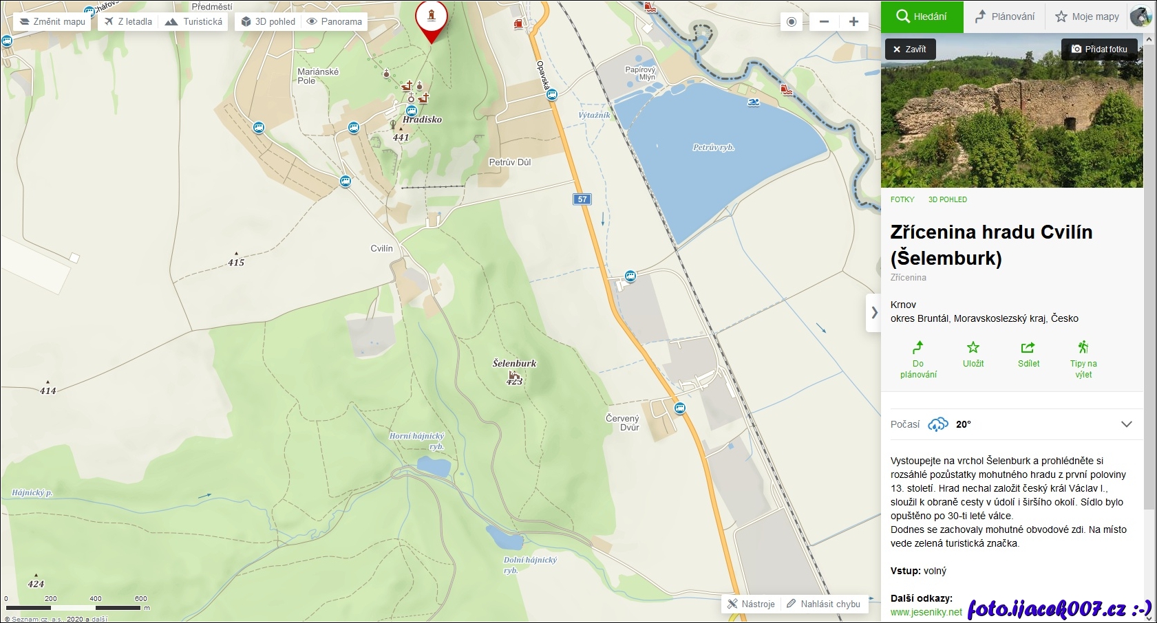 I na mapovém portálu mapy.cz najdete dvojí popis stejného místa.