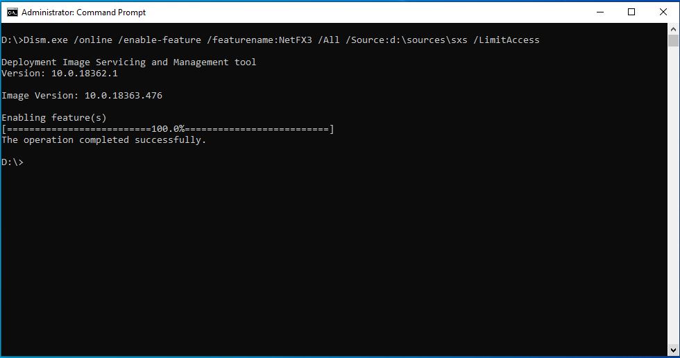Instalace NetFrameworku 3.5 z příkazové řádky offline