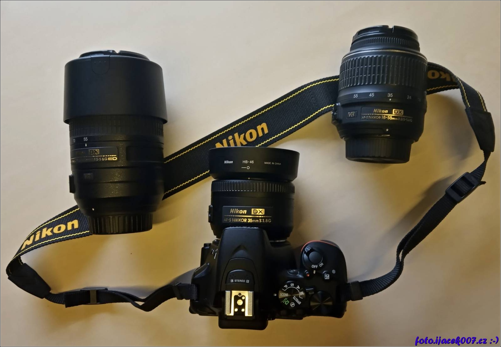 Pohled na Nikon D5600 a trojici používaných objektivu