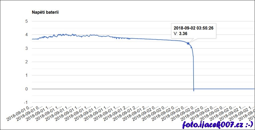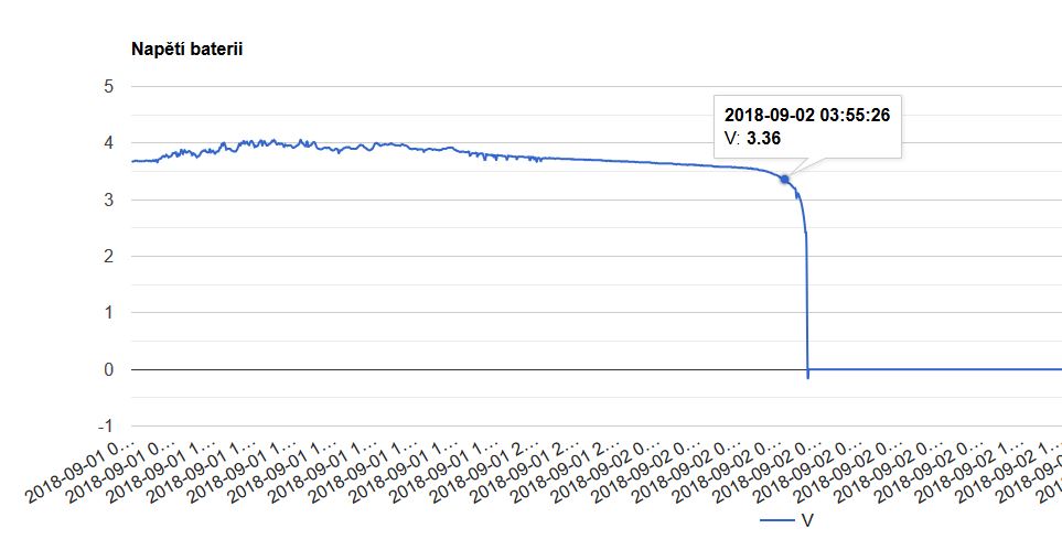 graf napětí baterie a kolaps napájecího okruhu.