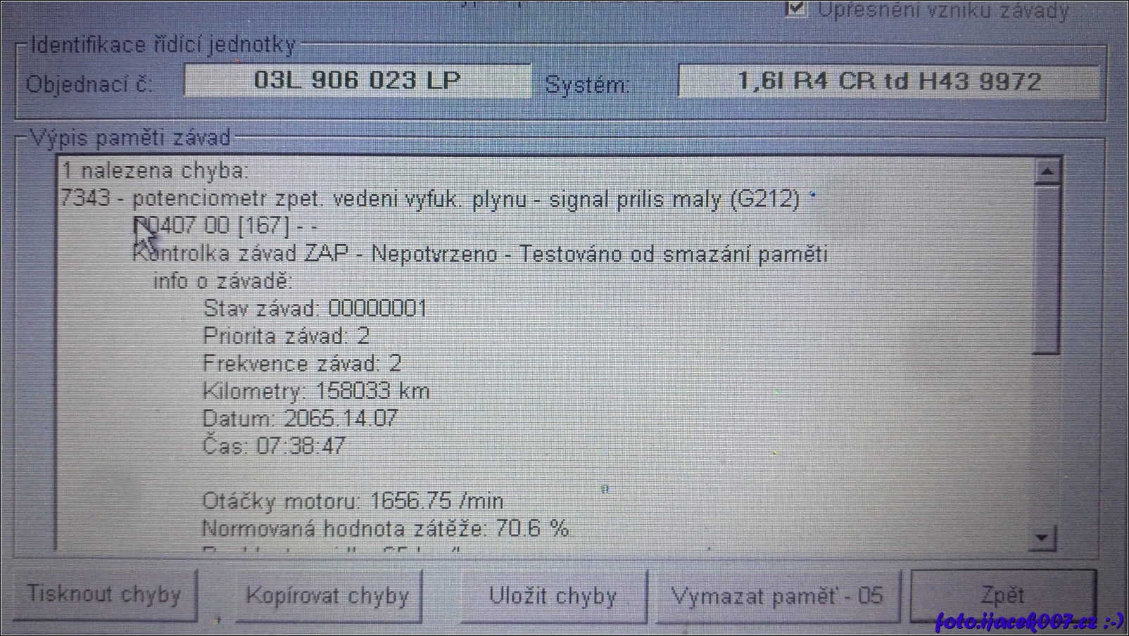načtení paměti závad při blikající chybě žhavení škoda octavia II