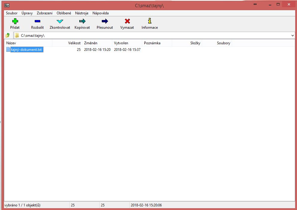 pohled na rozhraní programu 7zip