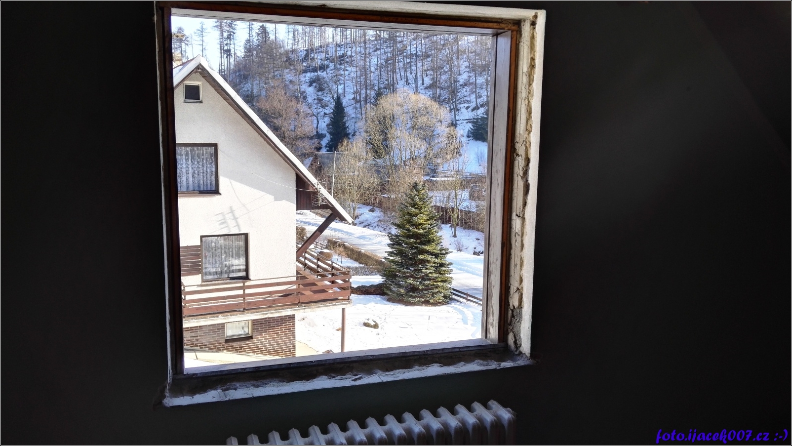 pohled na vybourané okno