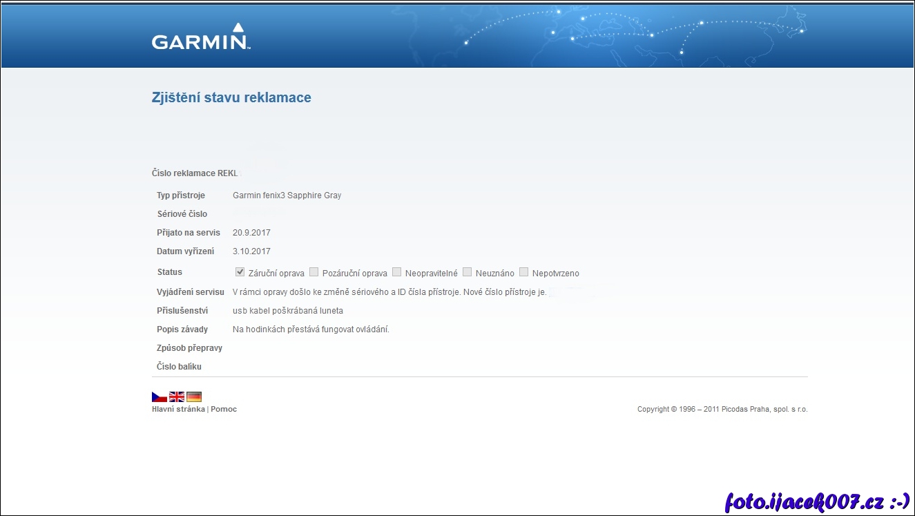reklamační portál garmin.cz