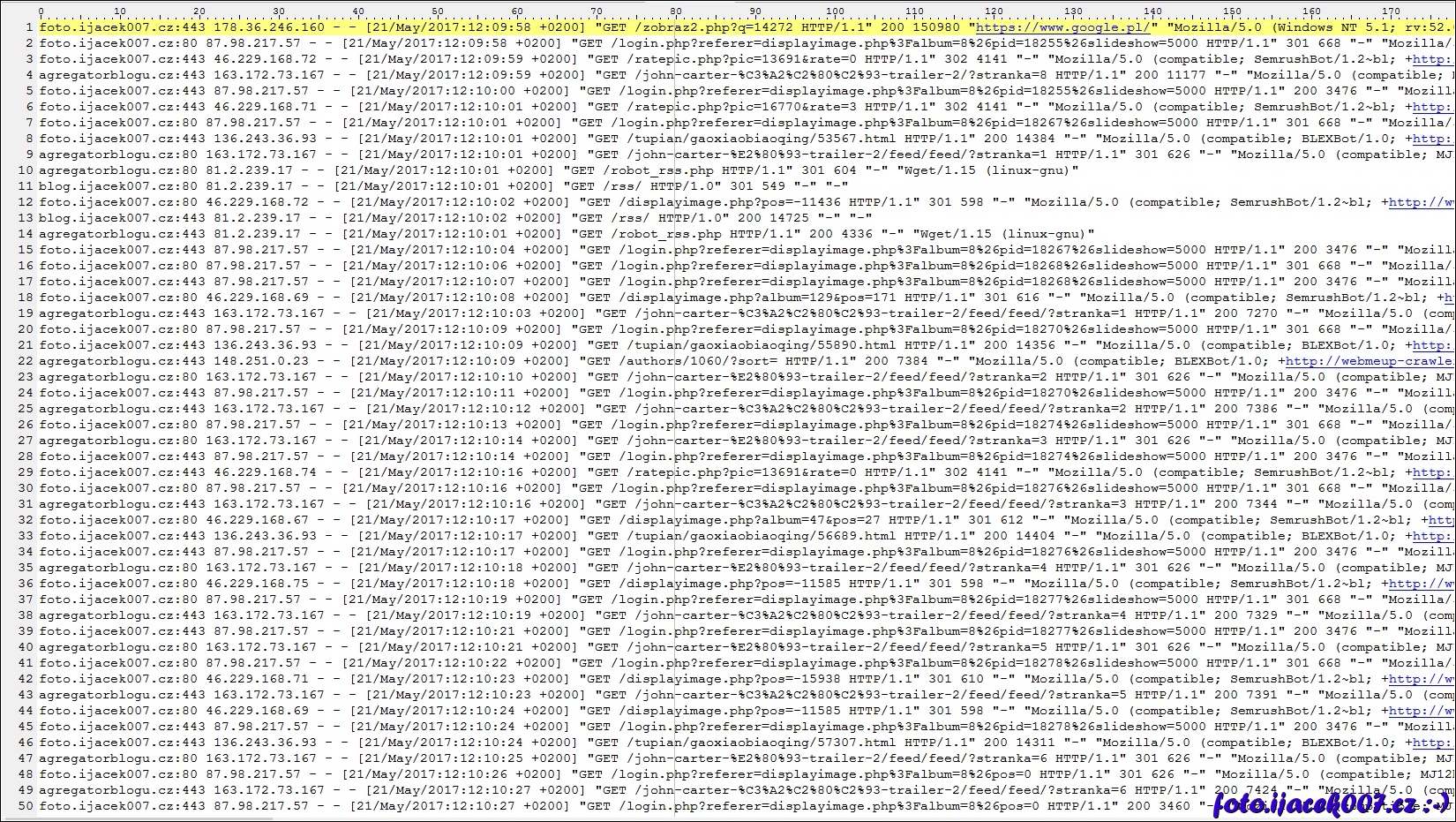 pohled na přístupový log apache serveru