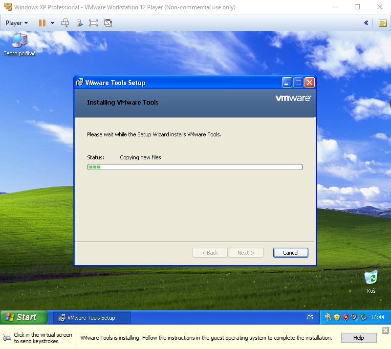 instalator nástroju VMware pod os Windows XP