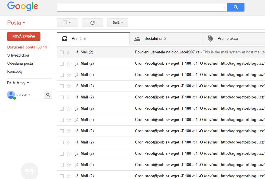 špatné nastavení cronu poslala pokaždé email