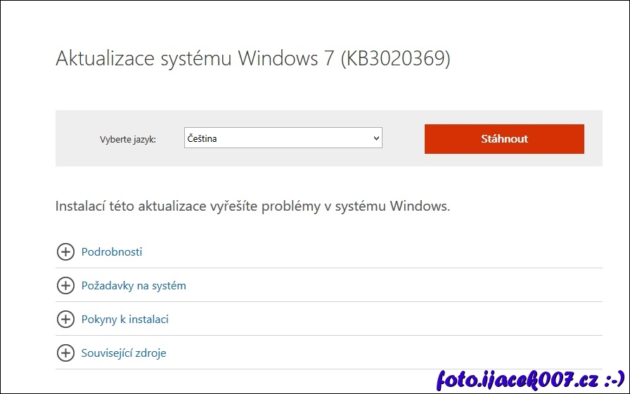 stažení aktualizace ze stránek Microsoft
