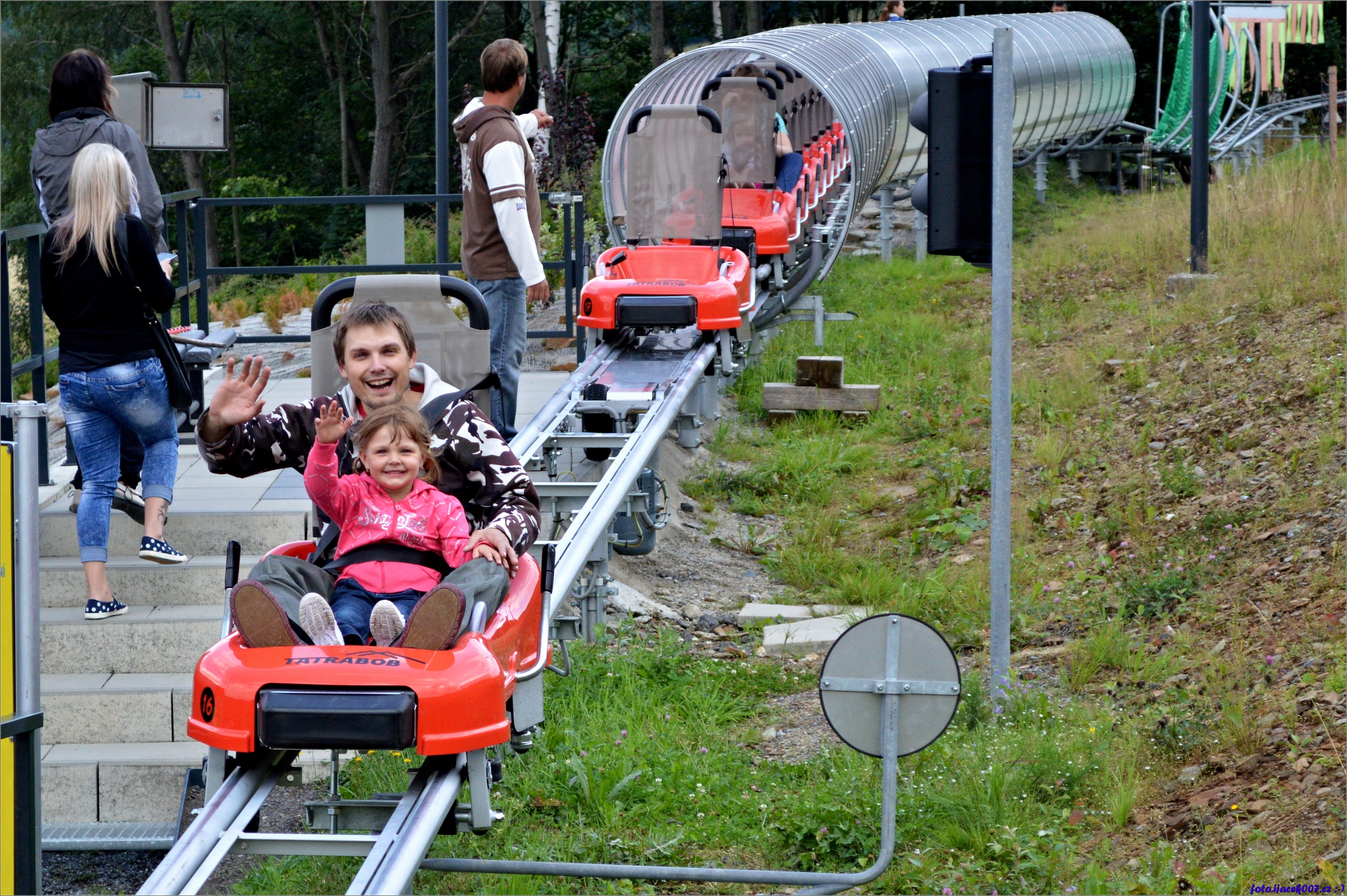 já a dcera spokojeně mávající na bobech ve Vrbně
