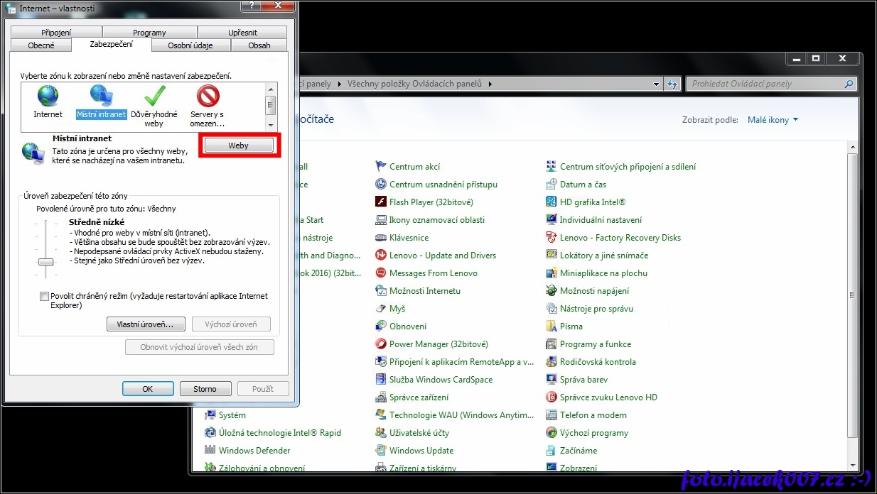naastavení internetu intranet