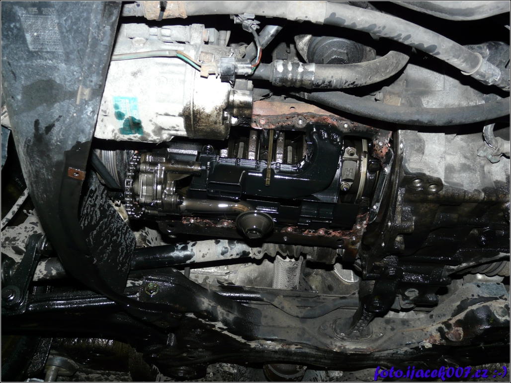 pohled na spodní část motor bez olejové vany